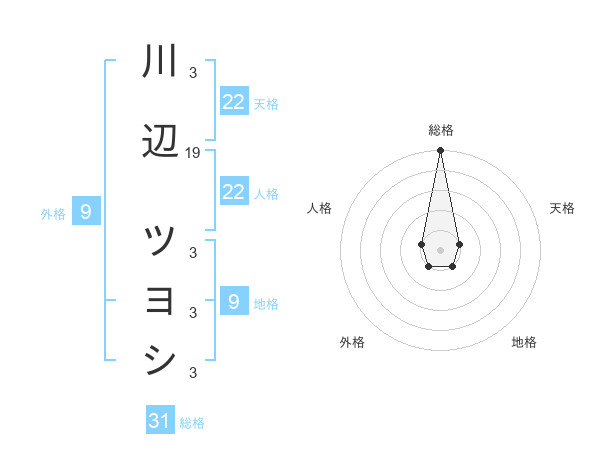 川辺 ツヨシさんを姓名の画数から五運を鑑定