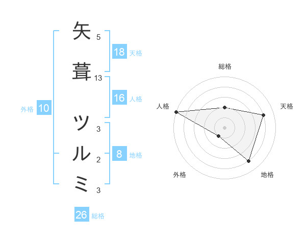 矢葺 ツルミさんを姓名の画数から五運を鑑定