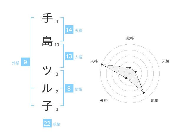 手島 ツル子さんを姓名の画数から五運を鑑定