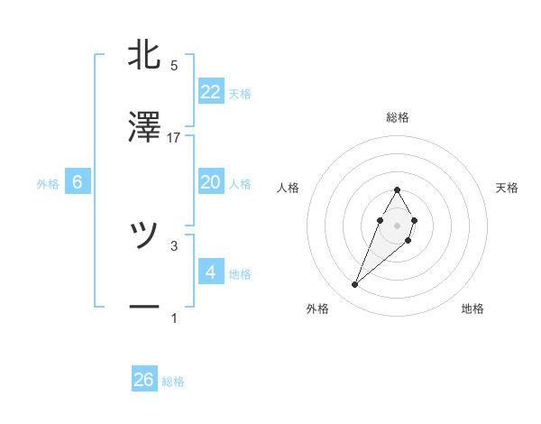 北澤 ツーさんを姓名の画数から五運を鑑定