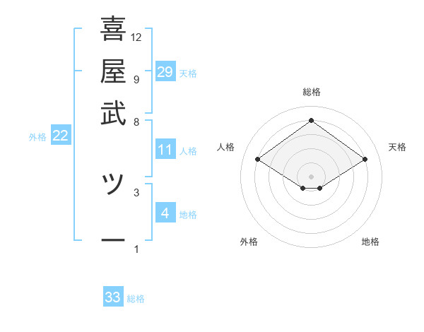 喜屋武 ツーさんを姓名の画数から五運を鑑定