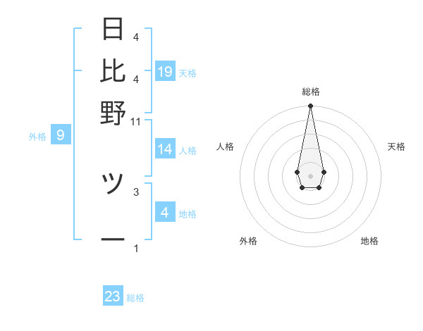 日比野 ツーさんを姓名の画数から五運を鑑定