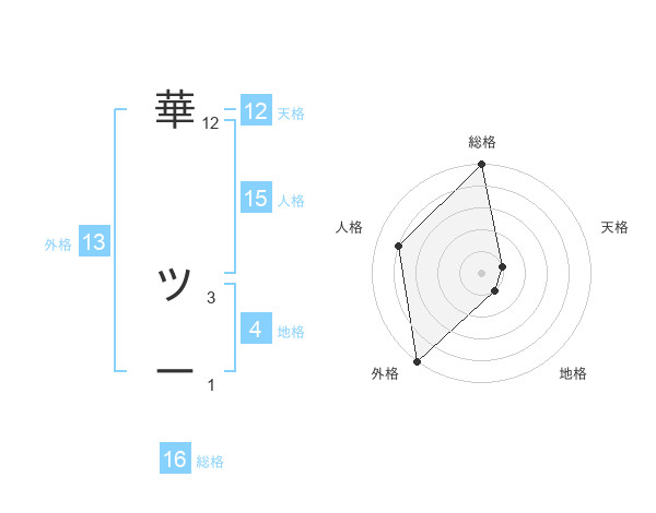 華 ツーさんの総格は16画の5点!