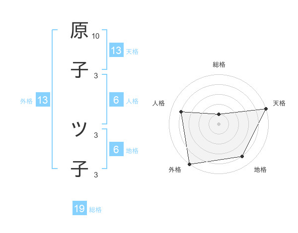 原子 ツ子さんの外格は13画の5点!