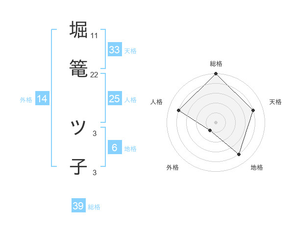 堀篭 ツ子さんを姓名の画数から五運を鑑定