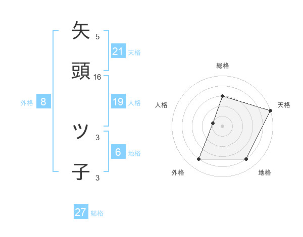 矢頭 ツ子さんを姓名の画数から五運を鑑定