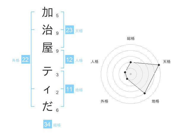 加治屋 ティださんの天格は23画の5点