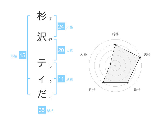 杉沢 ティださんを姓名の画数から五運を鑑定