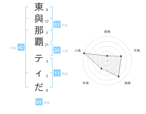 東與那覇 ティださんの総格は64画の1点!