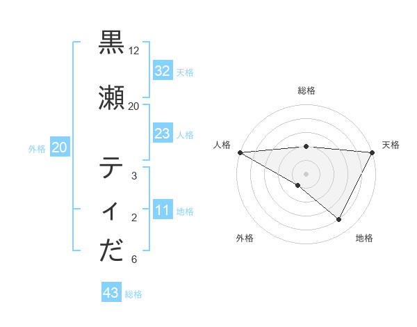 黒瀬 ティださんの総格は43画の2点!
