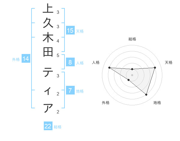 上久木田 ティアさんを姓名の画数から五運を鑑定