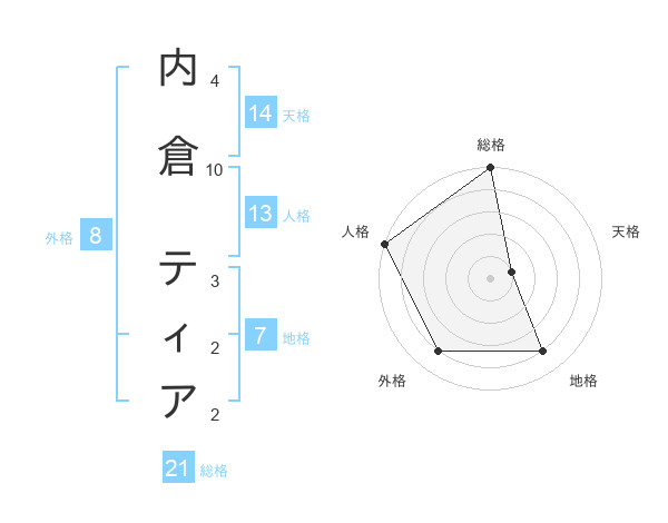 内倉 ティアさんを姓名の画数から五運を鑑定
