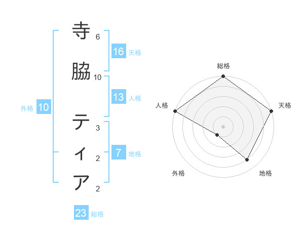 寺脇 ティアさんを姓名の画数から五運を鑑定