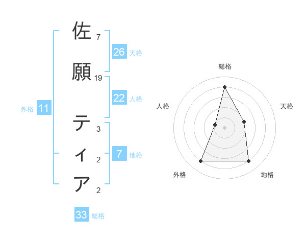 佐願 ティアさんを姓名の画数から五運を鑑定