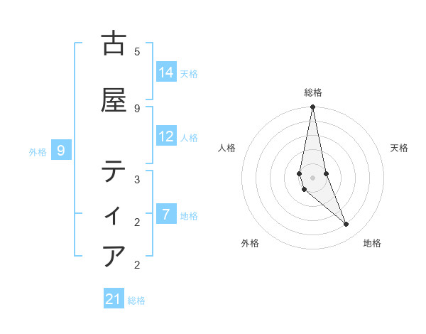 古屋 ティアさんを姓名の画数から五運を鑑定