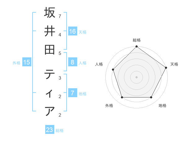 坂井田 ティアさんを姓名の画数から五運を鑑定