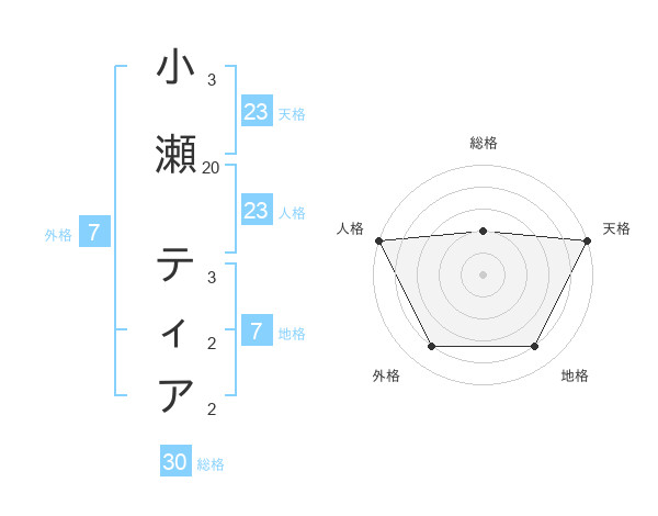 小瀬 ティアさんを姓名の画数から五運を鑑定
