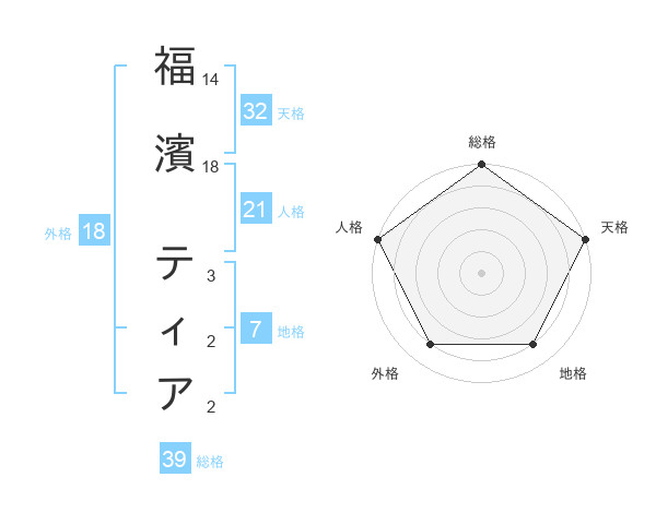 福濱 ティアさんの総格は39画の5点!