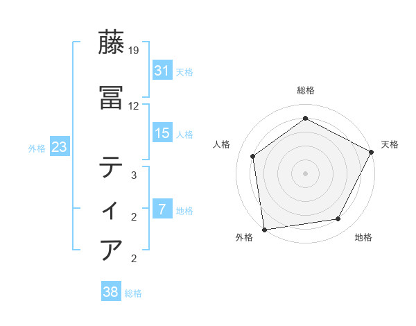藤冨 ティアさんの外格は23画の5点!