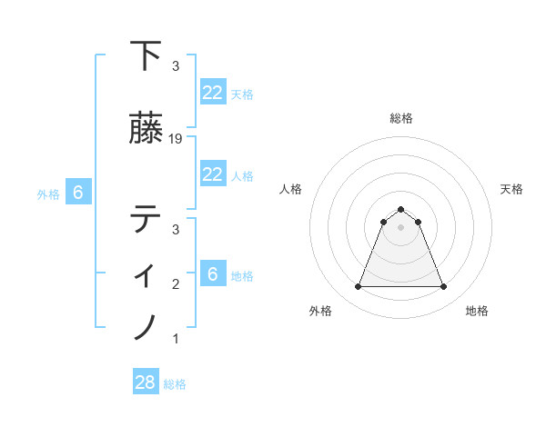 下藤 ティノさんを姓名の画数から五運を鑑定
