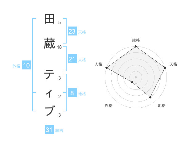 田蔵 ティブさんを姓名の画数から五運を鑑定