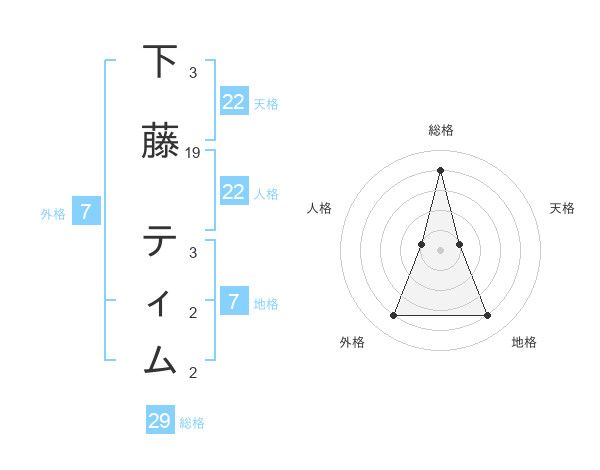 下藤 ティムさんを姓名の画数から五運を鑑定