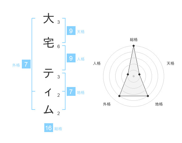 大宅 ティムさんの総格は16画の5点!