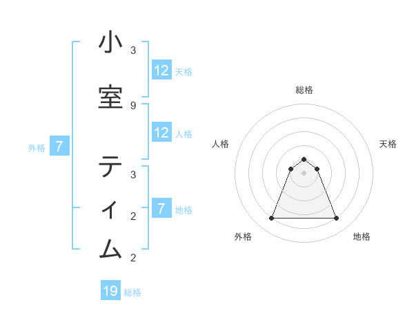 小室 ティムさんの総格は19画の1点!
