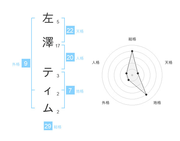 左澤 ティムさんの総格は29画の4点!