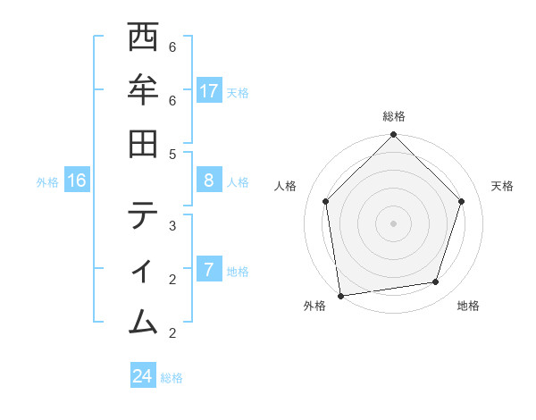 西牟田 ティムさんを姓名の画数から五運を鑑定
