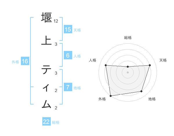 堰上 ティムさんを姓名の画数から五運を鑑定