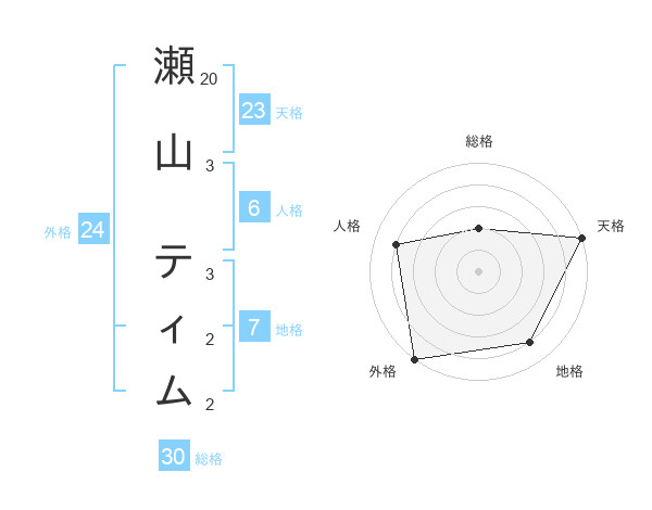 瀬山 ティムさんを姓名の画数から五運を鑑定