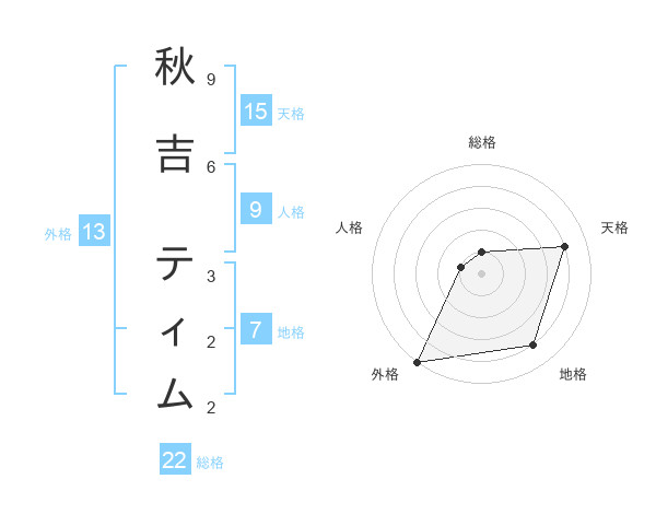 秋吉 ティムさんを姓名の画数から五運を鑑定