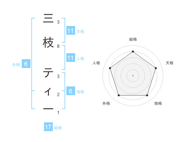 三枝 ティーさんを姓名の画数から五運を鑑定