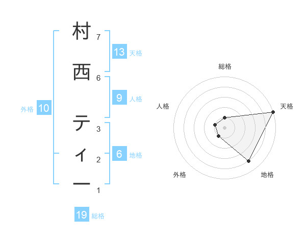 村西 ティーさんの天格は13画の5点!