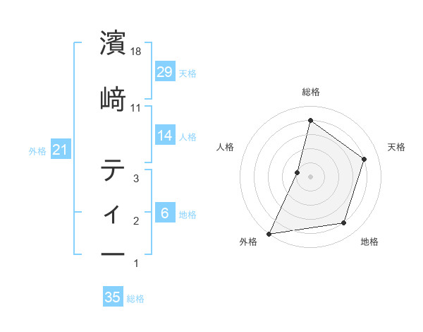 濱﨑 ティーさんの総格は35画の4点