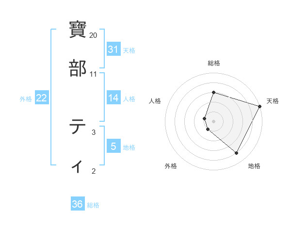 寶部 ティさんの天格は31画の5点!