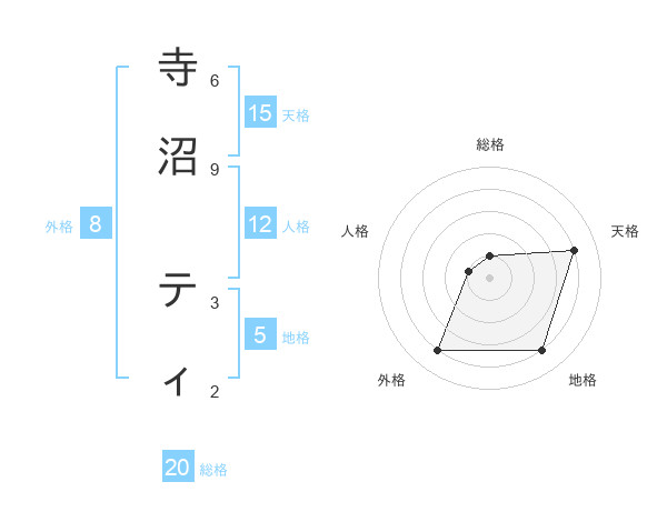 寺沼 ティさんの天格は15画の4点!