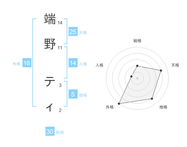 端野 ティさんの総格は30画の2点!