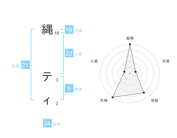 縄 ティさんの外格は21画の5点!