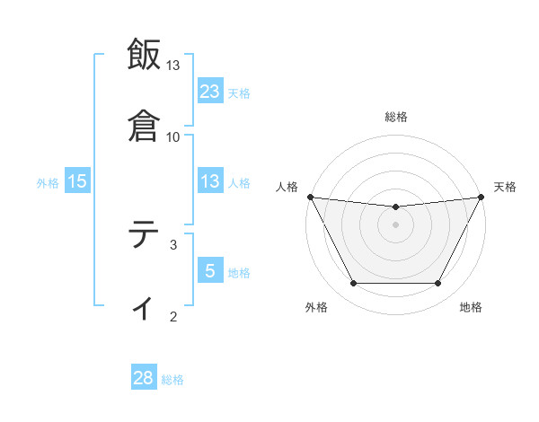 飯倉 ティさんを姓名の画数から五運を鑑定