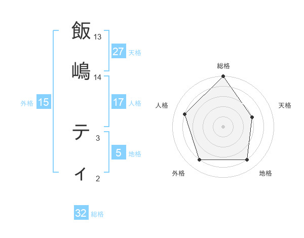 飯嶋 ティさんを姓名の画数から五運を鑑定