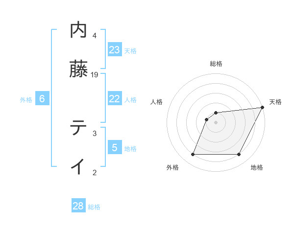 内藤 テイさんの天格は23画の5点!