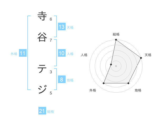 寺谷 テジさんを姓名の画数から五運を鑑定