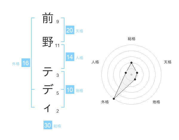 前野 テディさんの外格は16画の5点!