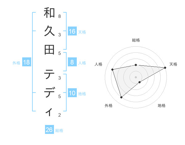 和久田 テディさんの天格は16画の5点!