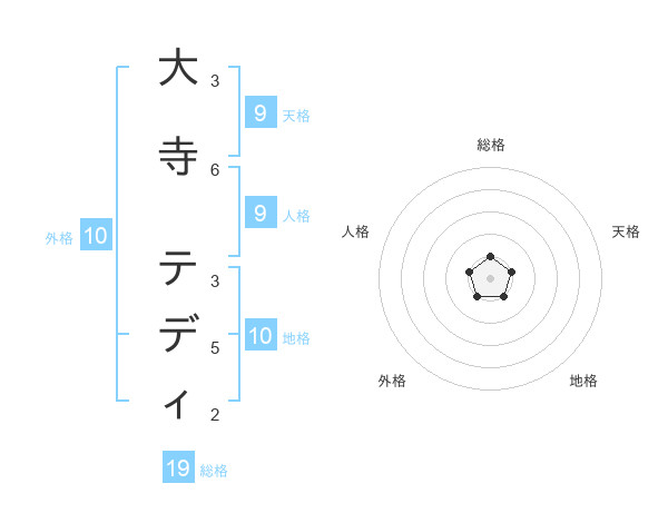 大寺 テディさんの地格は10画の1点!
