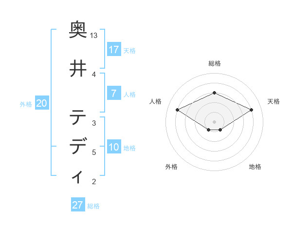 奥井 テディさんの天格は17画の4点!