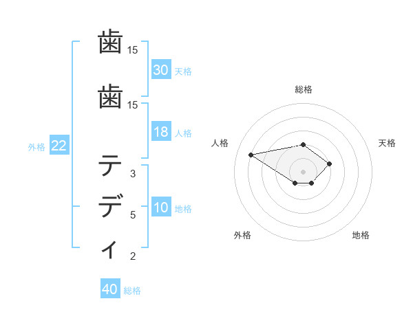 歯歯 テディさんを姓名の画数から五運を鑑定