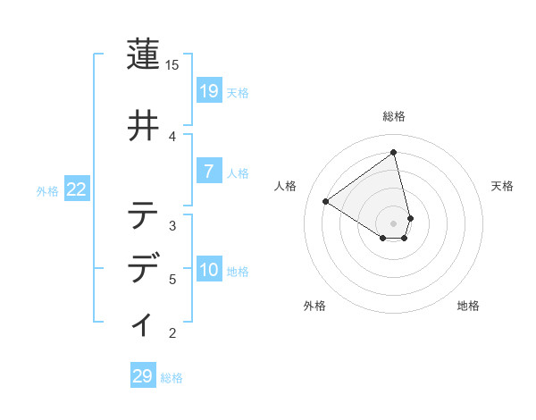 蓮井 テディさんを姓名の画数から五運を鑑定
